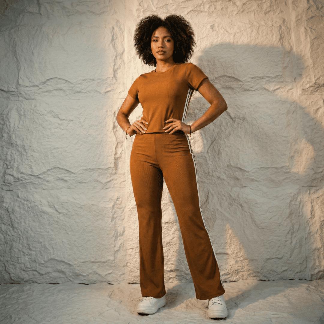 Set de 2 piezas: Top ajustado y Pantalón de bota semi-recta, en material Rib pitillo. Perfecto para tallas de la 6 a la 16.